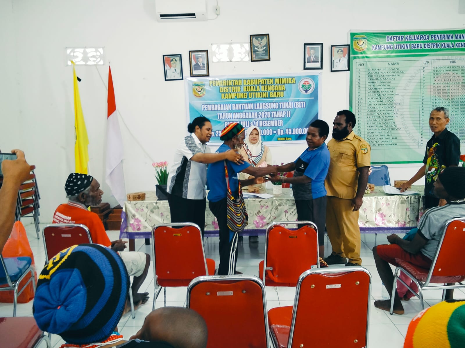 MPN – MIMIKA. Sedikitnya 25 Kelompok Penerima Manfaat (KPM) di Kampung Utikini I Distrik Kuala Kencana – Mimika, Selasa (23/12) 2025 menerima Bantuan Langsung Tunai (BLT) Tahap Dua Tahun 2025 (periode Juli-Desember) di aula kampung.