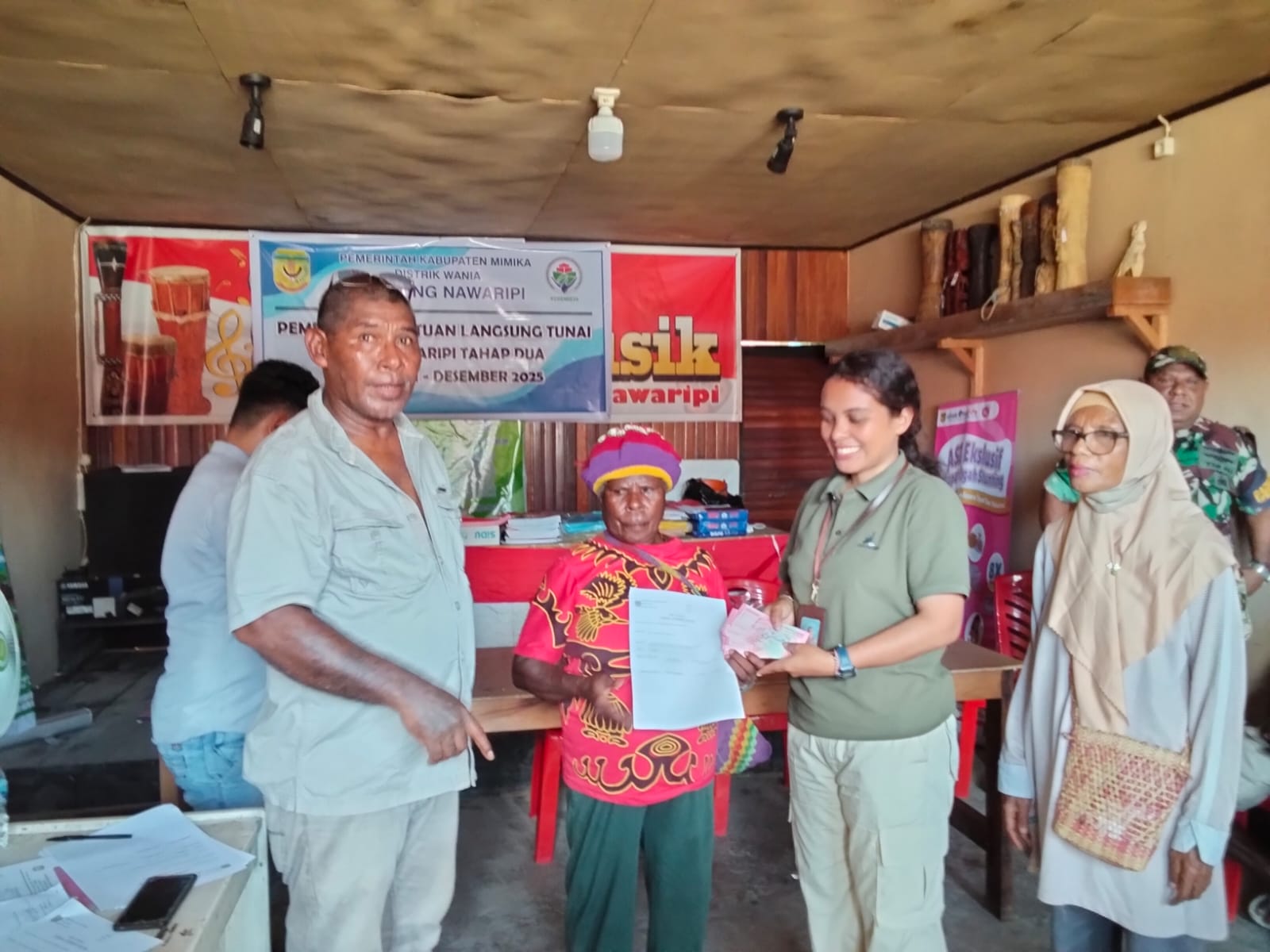 MPN – MIMIKA. Sedikitnya 45 kelompok penerima manfaat (KPM) menerima dana bantuan langsung tunai (BLT) tahap II dari Pemerintah Kampung Nawaripi, Sabtu (20/12) 2025. BLT ini diharapkan dapat dipergunakan untuk kebutuhan hidup sehari-hari warga dan jangan habiskan untuk membeli minuman keras (miras) dan hal hal yang tidak bermanfaat.