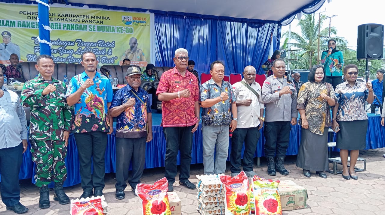 MPN – TIMIKA. Memperingati Hari Pangan Sedunia ke-80, Kamis (16/10) 2025, Dinas Ketahanan Pangan Kabupaten Mimika, Provinsi Papua Tengah menggelar Gerakan Pangan Murah (GPM) di pelataran Gedung Eme Neme Yauware yang mengusung tema “Bergandengan Tangan untuk Pangan yang Lebih Baik dan Masa Depan yang Lebih Baik”.
