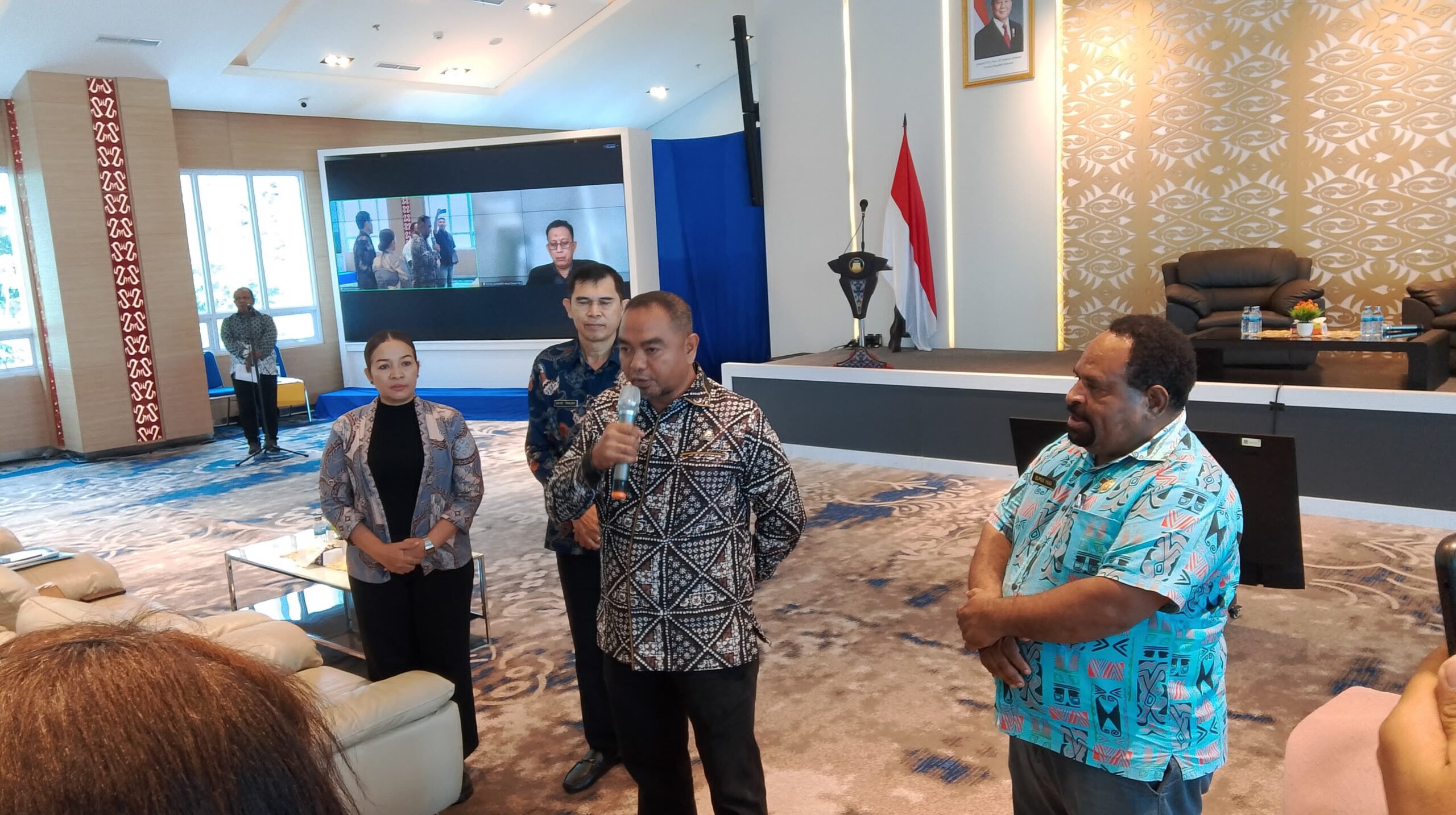 Sosialisasi ini menghadirkan pemateri dari Ketua PWI Provinsi Papua dan Wakil Ketua Dewan Pers, Totok Suryanto (melalui daring).