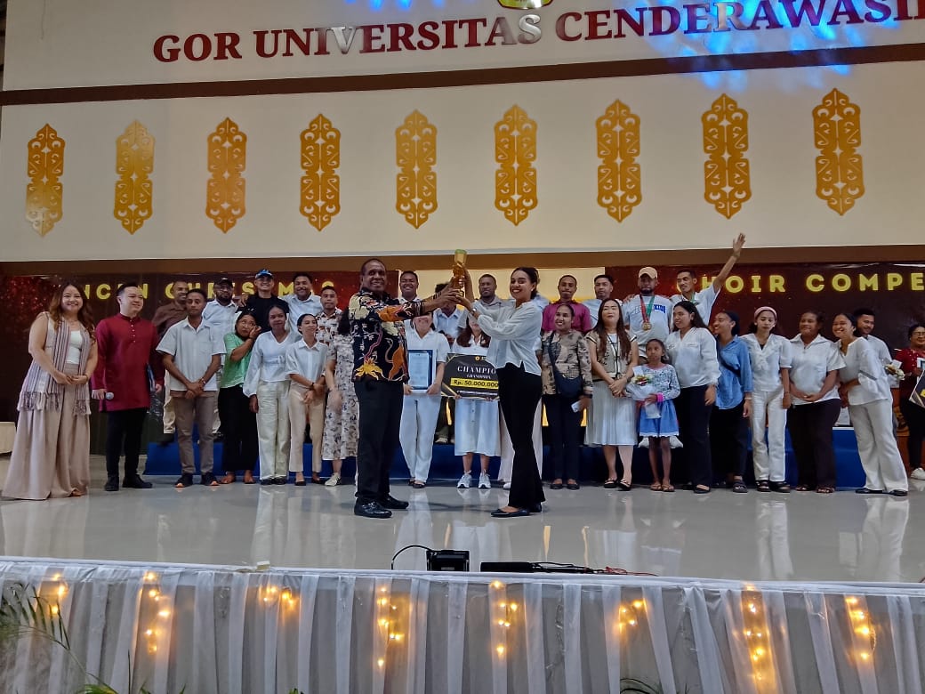 MPN – JAYAPURA. Ajang Uncen Christmas Choir Competition ke-3 tahun 2025 resmi berakhir, Kamis (12/12) 2025 di GOR UNCEN Abepura – Jayapura, penampilan memukau GKI Pniel Choir Kotaraja mengantarnya meraih Juara Grandprix dengan skor tertinggi 87,97. Keberhasilan ini sekaligus menandai, semakin meningkatnya kualitas kompetisi paduan suara yang digelar Universitas Cenderawasih (Uncen).