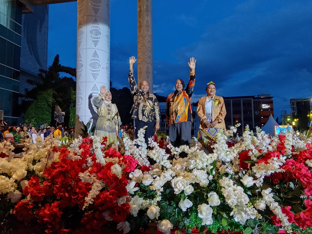 “Pergi ke Sentani membeli matoa, pulang membawa senyum yang ramah. Bila hati kita selalu bersaudara, Papua akan semakin indah dan cerah. Burung cendrawasih menari di udara, sayapnya indah menembus cahaya. Jaga harmoni kuatkan kasih bersama, demi Papua cerah untuk kita semua,” serunya yang disambut tepuk meriah rakyat yang hadir.