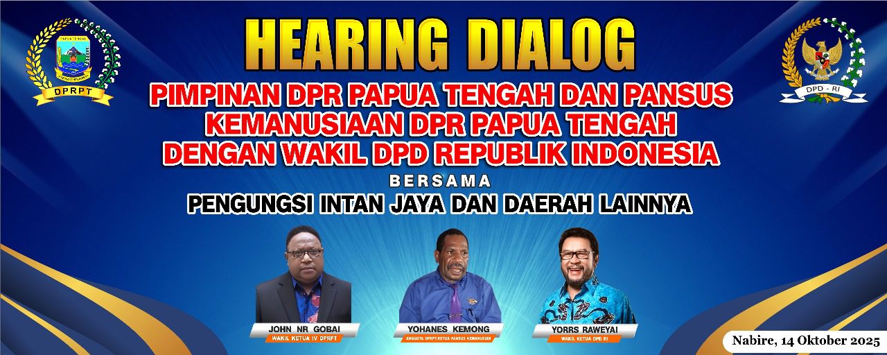 MPN – NABIRE. Mengambil tema, “Dialog Kemanusiaan sebagai Fondasi Pembangunan Papua Tengah”, Selasa (14/10) 2025 hari ini mulai 09.00 Wit – selesai akan digelar Hearing dialog oleh Pimpinan DPRD Papua Tengah dan Pansus Kemanusiaan DPRD Papua Tengah di Auditorium RRai Nabire, Provinsi Papua Tengah.