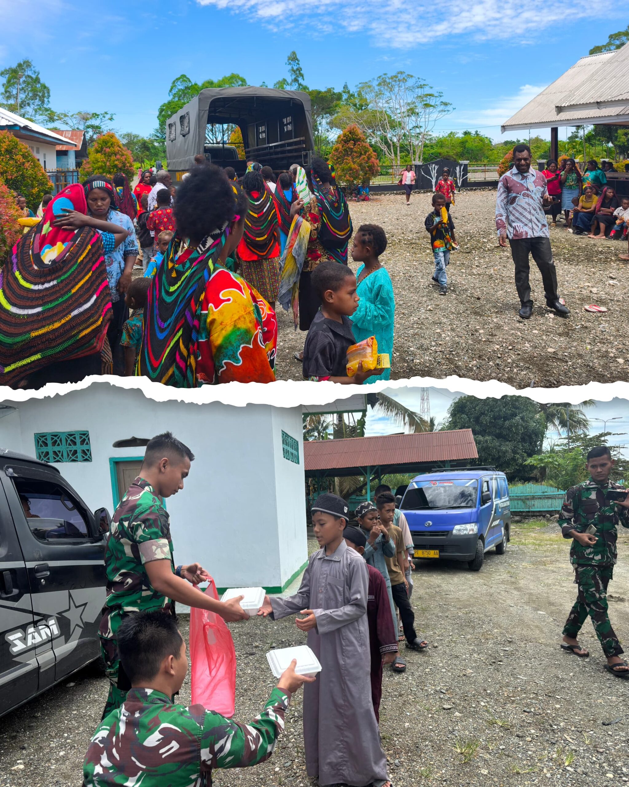 Sejak pagi, prajurit Yonif TP 804/DBAY telah menyiapkan nasi kotak, susu kotak, serta biskuit untuk dibagikan kepada para jamaah. Tak sekadar hadir, personel TNI juga ikut mengikuti ibadah sesuai agama masing-masing sebagai wujud penghormatan terhadap nilai toleransi dan keberagaman.