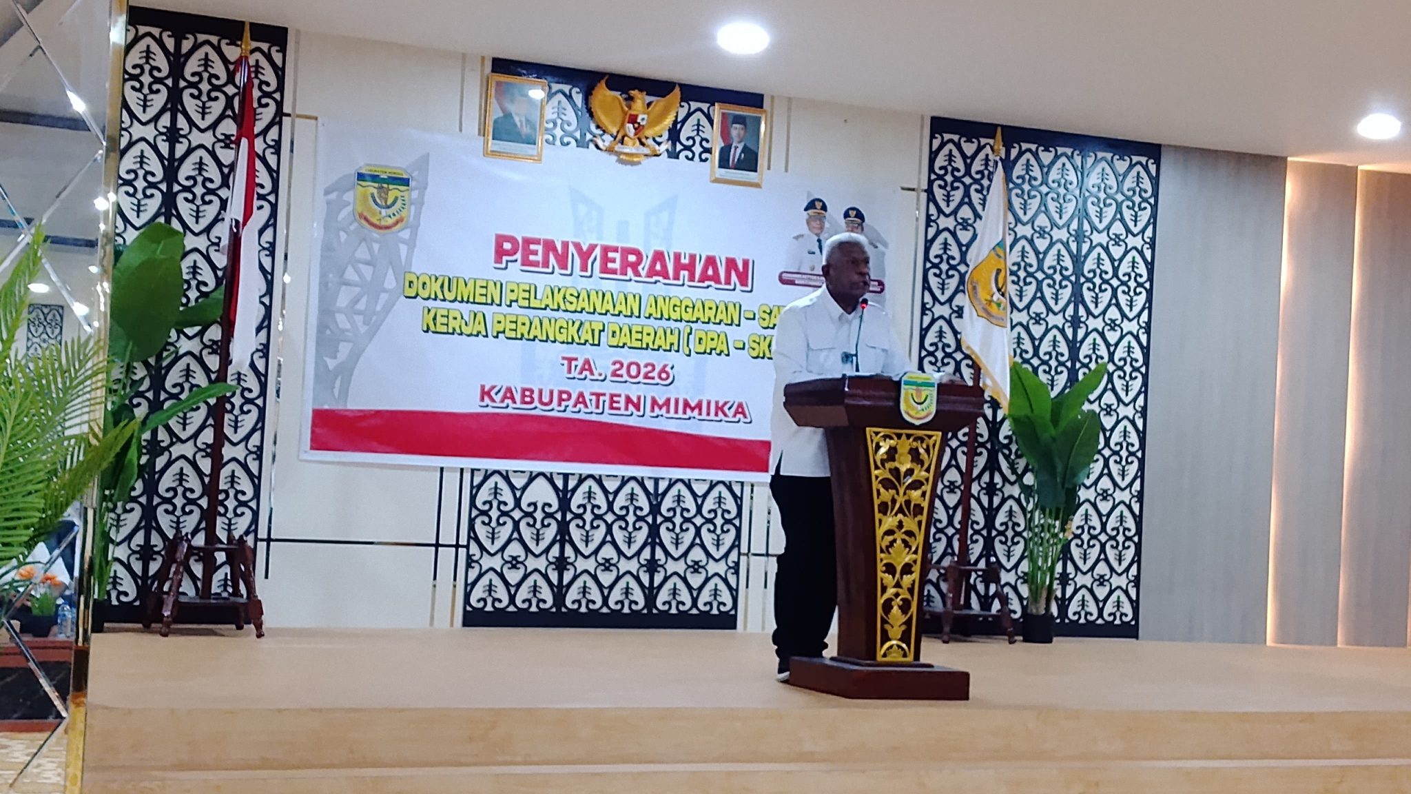 Secara resmi, Bupati Mimika Johannes Rettob menyerahkan Dokumen Pelaksanaan Anggaran Satuan Kerja Perangkat Daerah (DPA-SKPD) Tahun Anggaran 2026 kepada seluruh pimpinan OPD, Rabu (25/2) 2026. Berada diantara Wakil Bupati Mimika, Emanuel Kemong dan Sekretaris Daerah dan semua jajaran yang turut menyaksikan momentum yang menjadi titik awal eksekusi program daerah tahun berjalan itu, mungkin penting diselipkan catatan penting yangharus dipahami semua pimpinan OPD di Kabupaten Mimika – bukan untuk mekasud apapun – selain demi mendukung keseriusan pimpinan daerah untuk mengerahkan komitmennya mewujudkan Mimika sebagai Rumah Bersama yang SMART dalam semboyan Eme Neme Yauware.
