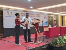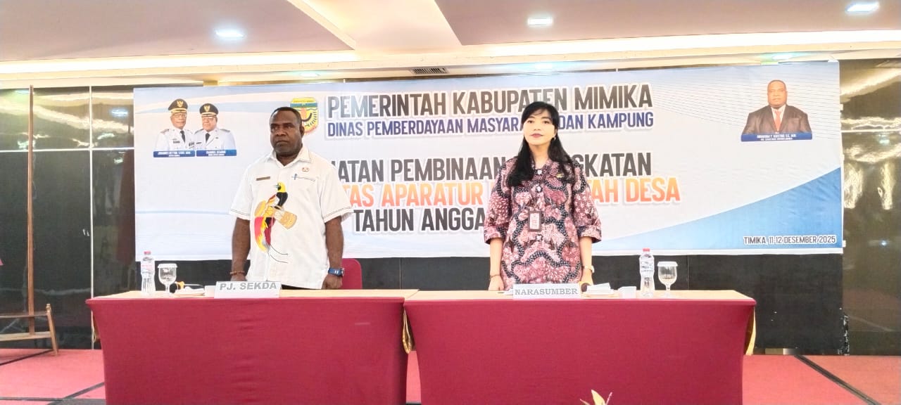Pj. Sekda Mimika, Abraham Kateyau memukul Tifa membuka kegiatan pembinaan kapasitas Aparatur pemerintahan Kampung di Kabupaten Mimika, usia membacakan sambutan Mimika Mimika, Johannes Rettob.