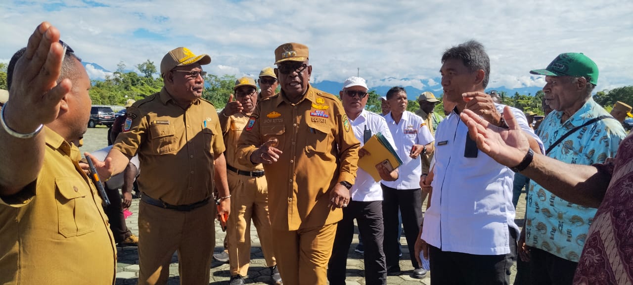 Bupati Johannes Rettob saat ditanyai soal ASN Mundur usai Apel Gabungan. (Foto:MPN.doc)